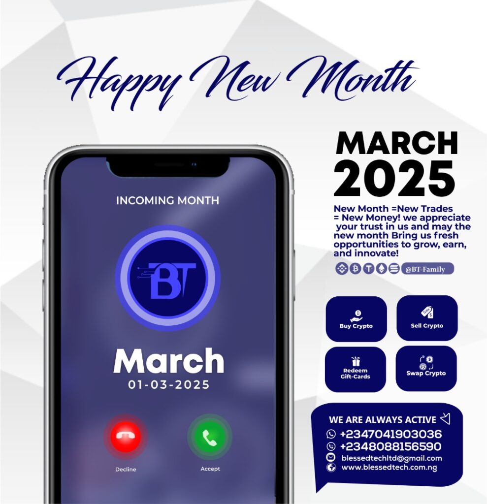 Welcome to a brand-new month! March is here, and at Blessed Tech, we are stepping into this new season with fresh energy, innovation, and even greater opportunities to serve you. Whether you’re looking to trade crypto, build a high-performing website, or optimize your digital presence, we are here to take you to the next level.